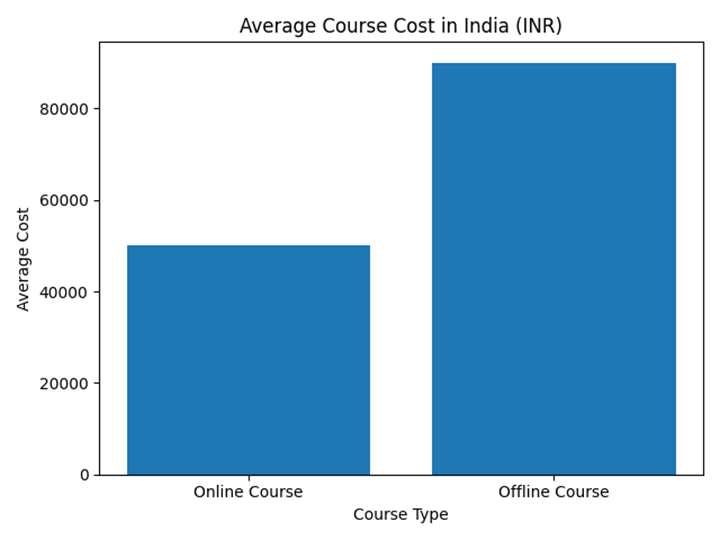 Offline digital marketing courses generally cost between ₹50,000 and ₹1,20,000 depending on the training institute and facilities provided.